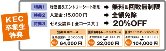 【個別指導】60分6コマ 自己分析(応用)、志望動機作成、話し方トレーニング、キャリアカウンセリング、模擬面接練習等を行い、短期間でレベルアップを目指します。 |