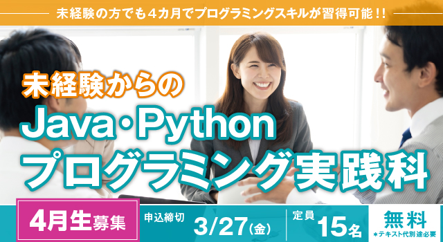 [2023年3月 開講](大阪 梅田・実践)未経験からのJava・Pythonプログラミング実践科[受付終了]