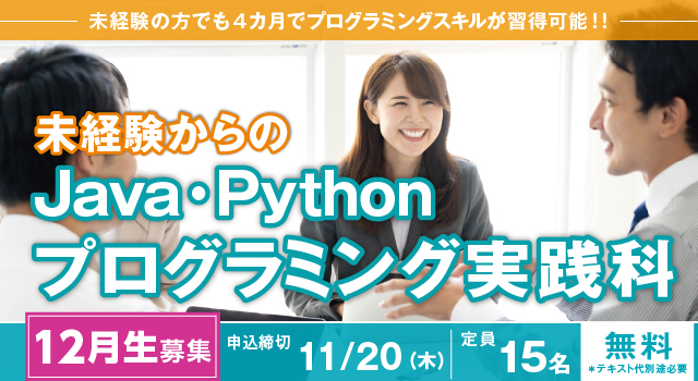 [2025年12月 開講](大阪 梅田・実践)未経験からのJava・Pythonプログラミング実践科