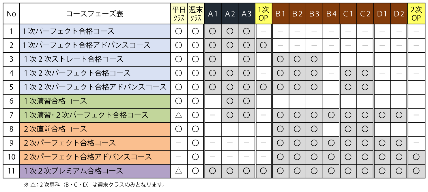 1次試験の実力養成と実践演習(A2, A3)のみに絞った演習中心のコース。